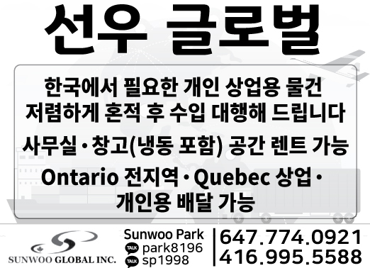선우 글로벌 작성자 정보 관리자 작성 작성일 2023.07.11 16:20 컨텐츠 정보 1,252 조회 목록 본문 한국에서 필요한 개인/상업용 물건을 저렴하게 혼적 후 수입 대행해 드립니다.사무실, 창고(냉동 포함) 공간 렌트도 가능!Ontario 전지역, Quebec에 상업/개인용 배달도 해드립니다.카톡: park8196, sp1998 관련자료 이전 LA 비즈니스 홍보 대행업체 [초기비용 없음] - 사장님들의 비즈니스를 지구 구석구석까지 홍보해 드리도록 하겠습니다. 작성일 2023.07.12 00:19 다음 [온라인] 나만의 K-POP 만들기! MIDI 음악 작곡/편곡 레슨 작성일 2023.06.02 23:51 댓글 0 등록된 댓글이 없습니다. 로그인한 회원만 댓글 등록이 가능합니다. 목록